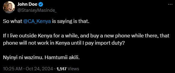 This means that from November 2024, new imports and locally assembled devices will be held to the regulations, while full implementation of the new policy will take effect on January 1, 2025. The government has reassured Kenyans that existing phones registered before October 31, 2024, will not be affected, but the future over affordable devices remains uncertain.