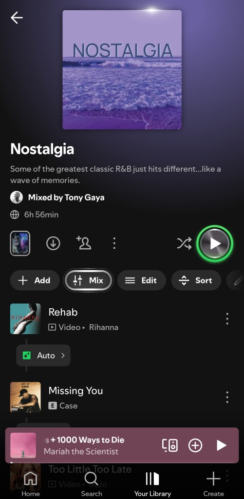 With the global rollout, every Premium user can now try out Mix. The Mix button appears in the toolbar of playlists you’ve created. From there: